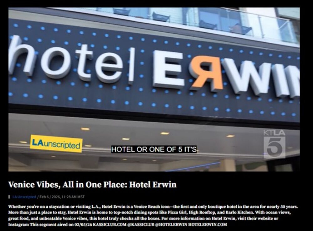 Tune in on Discover LA’s Facebook or Instagram, to see a livestream direct from the ocean-adjacent Hotel Erwin in Venice.