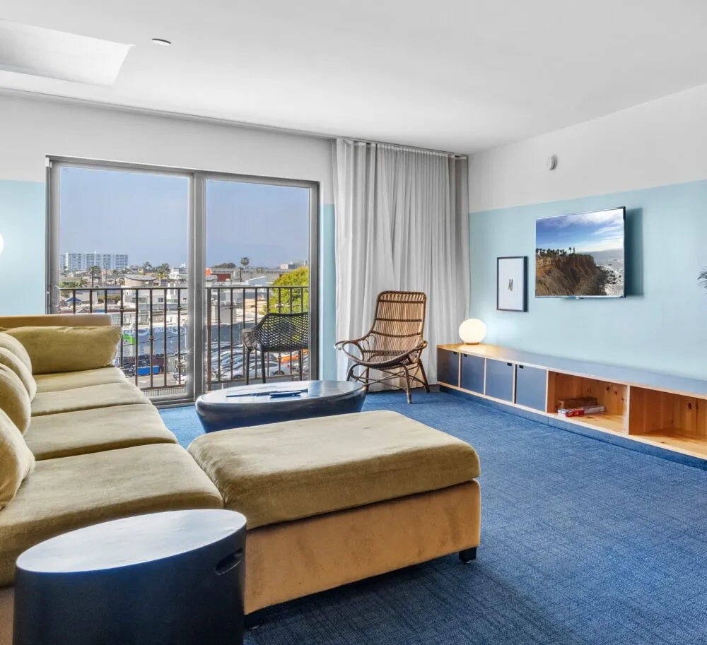 Stretch out in 646 square feet of style and comfort with epic city views of Venice Beach’s vibrant, eclectic scene. These expansive suites feature a private sleeping area with a King Bed, a Queen sofa sleeper in the separate living room, plus a dining area and wet bar—perfect for relaxing or entertaining. Step out onto your private balcony to soak in the unforgettable Venice vibes. Enjoy complimentary WiFi, a 55-inch HD TV, and a laptop-sized safe for your convenience.