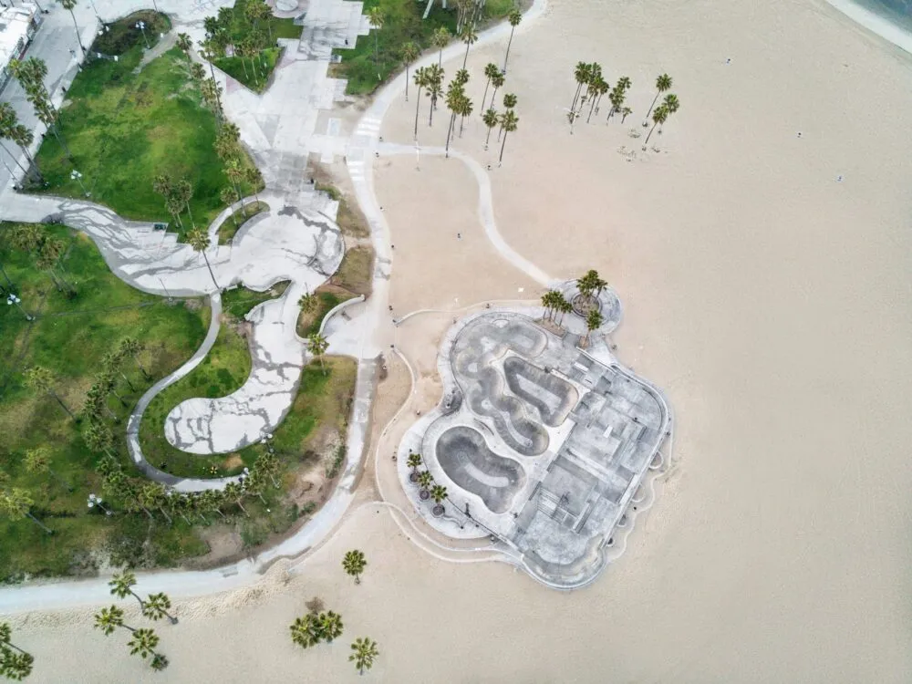 Officially known as the Dennis “Polar Bear” Agnew Memorial Skatepark — named after the famed Z-Boy skater Dennis Agnew — the 16,000-square-foot park sits near Windward Avenue and Ocean Front Walk. It’s free, open daily from 8 AM to sunset, and it never gets old.
